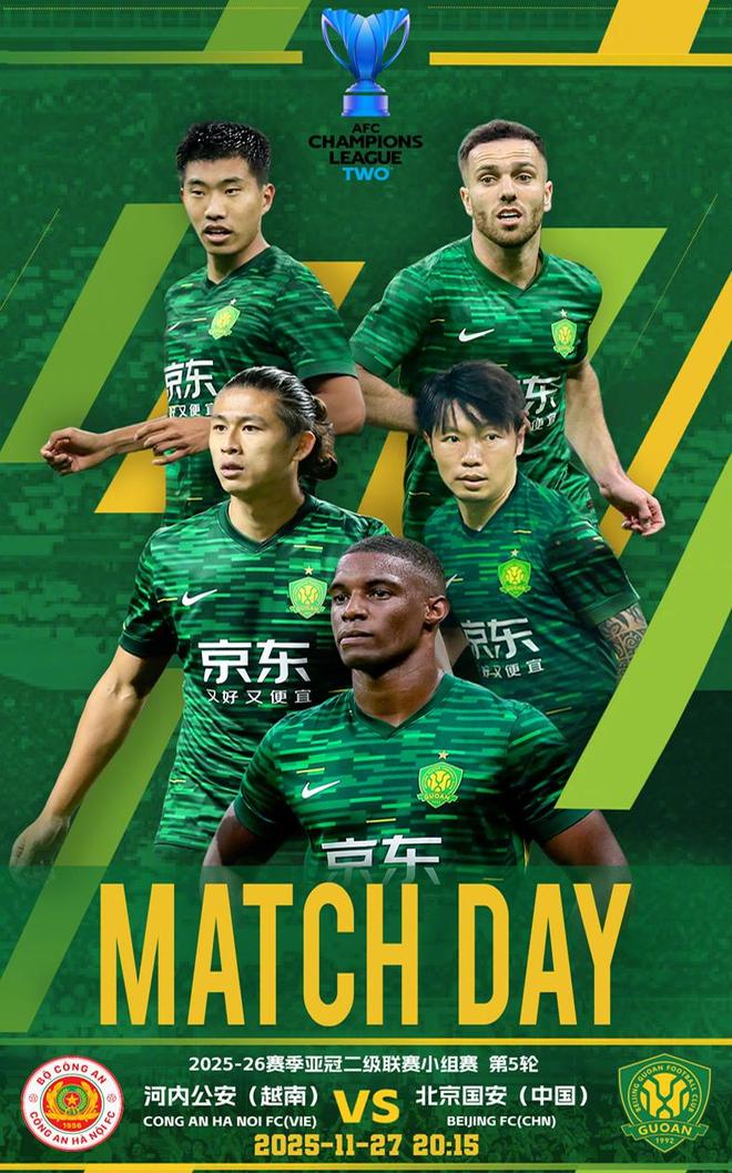 亚冠二级联赛:北京国安今晚挑战河内公安
