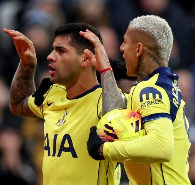 热刺过去已经吃到了3连败,而且防守端更是丢掉了10球,积分榜上已经从欧战区一路降到了下半区;这一轮客战同样实力不俗的纽卡,双方前70分钟没有任何斩获。直到第71分钟,戈登左路强行突破,吉马良斯禁区左路推射远角破门打破僵局;第79分钟罗梅罗禁区内抢点扳平比分。第86分钟,丹-伯恩禁区被拉倒造点,戈登主罚命中;眼看球队即将再次失利,这次罗梅罗挺身而出,他在第95分钟禁区倒钩破门梅开二度,热刺得以绝平纽卡,从而避免了4连败的尴尬。