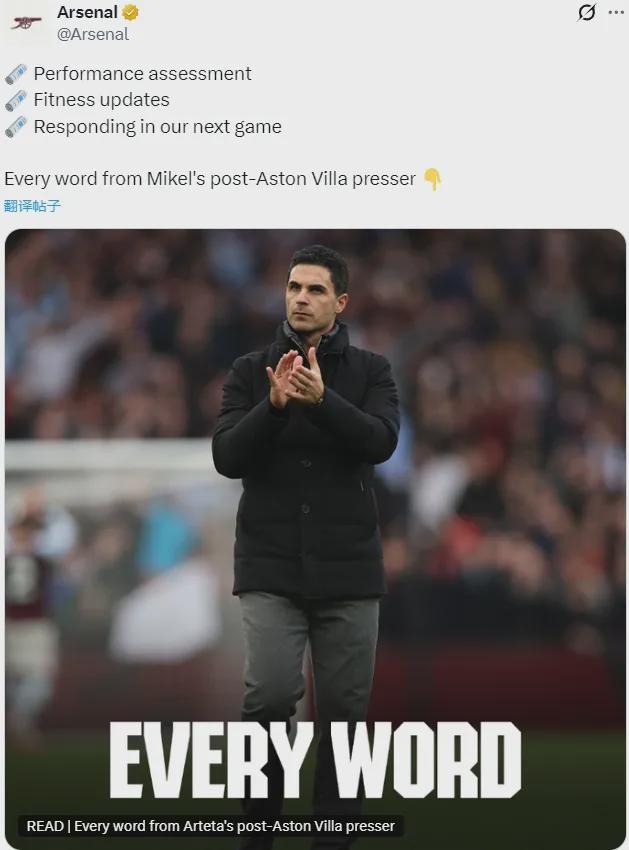 阿尔特塔出席了赛后新闻发布会,我们来看看阿森纳主帅的发言。